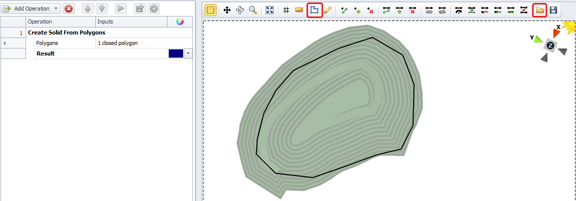 Creates a solid from a polygon. These polygons can be digitised or imported. |