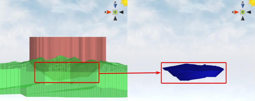 This operation is used for a pit containing 2 phases, to create a solid phase of Stage 2 excluding Stage 1.