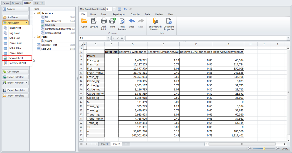 Inside RR it is possible to create Spreadsheet reports similar to what you would find in Microsoft Excel. Navigating and generating reports should be relatively straightforward if you are familiar with Excel. A high-level overview of the report and the key functionality is provided below.