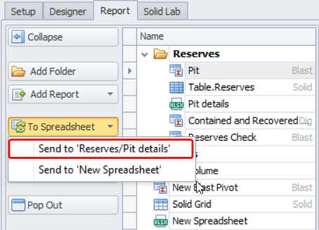 Select the To Spreadsheet.