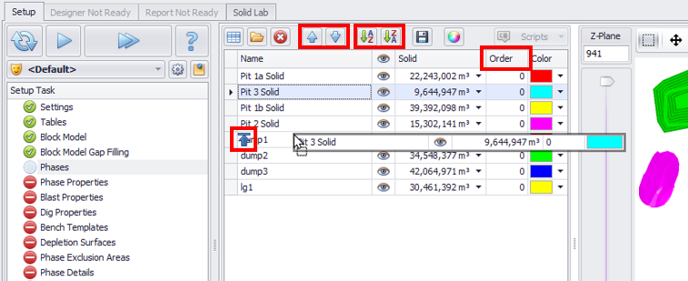 List of Phases and Sort options