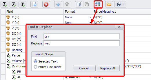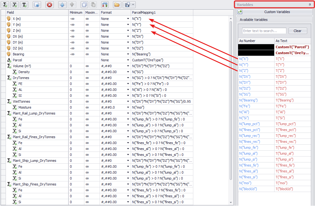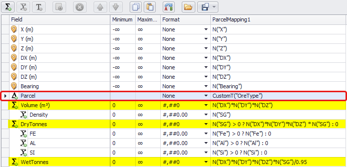 The Parcel field is used to categorise the material type in each block model cell.