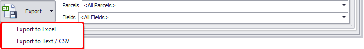 Selected parcels and fields of the Reserves Model can be exported to Excel or to Text/CSV formats.