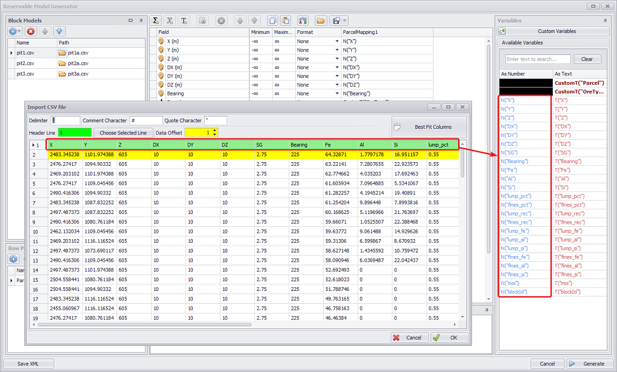 Reserve Model Generator > Import CSV file