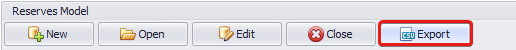You can export the entire Reserves Model to a CSV file. To do this, click the Export button on the top line and specify the path to the destination folder.