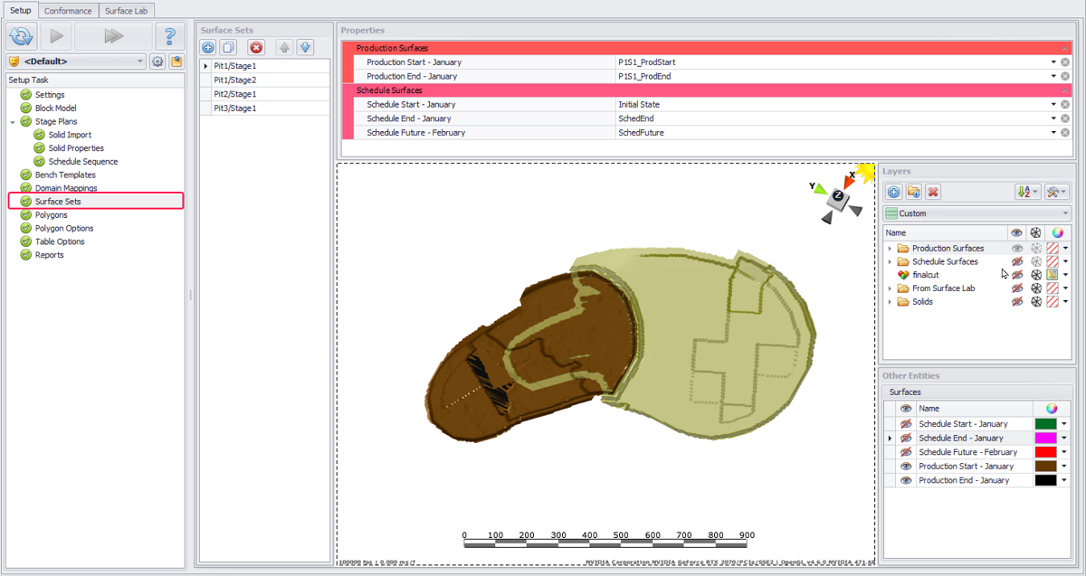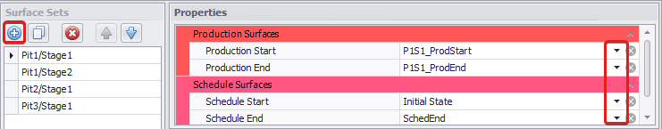 Multiple Surface Sets can be created, which is useful when different pits have different production surfaces.