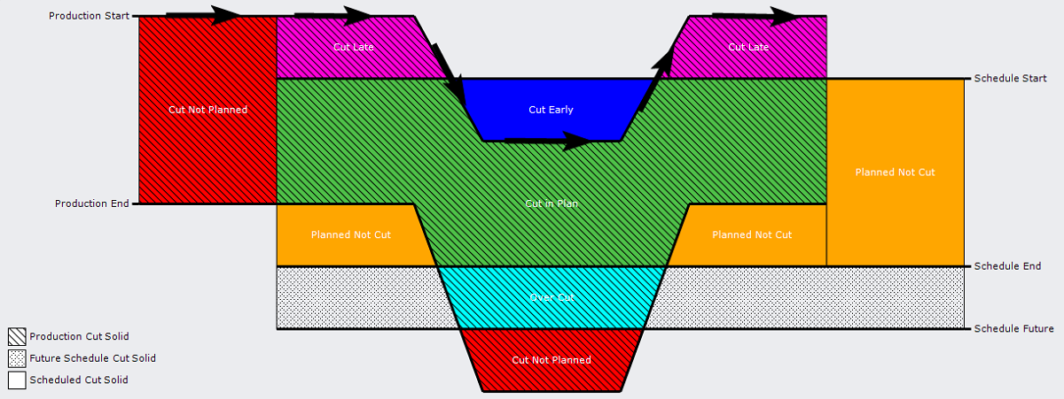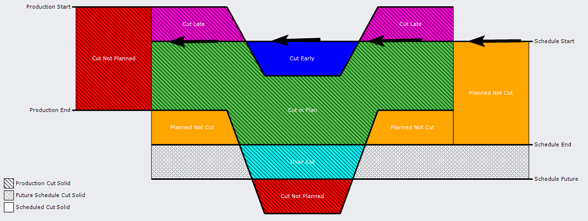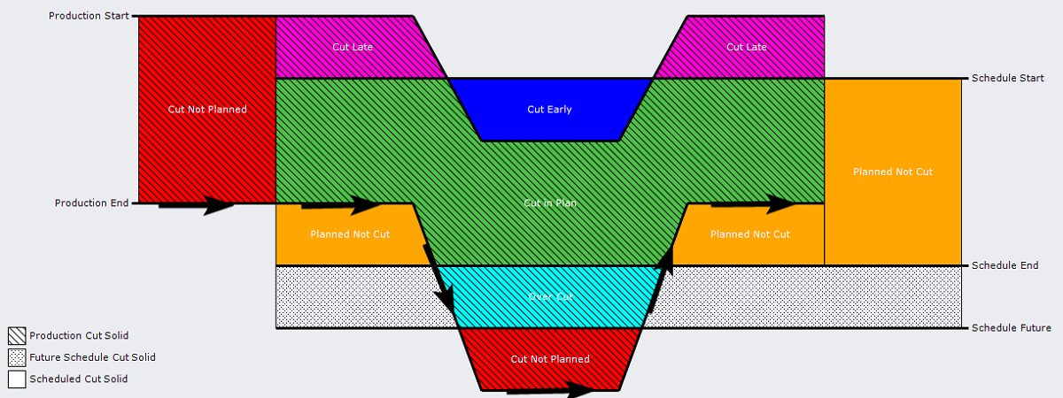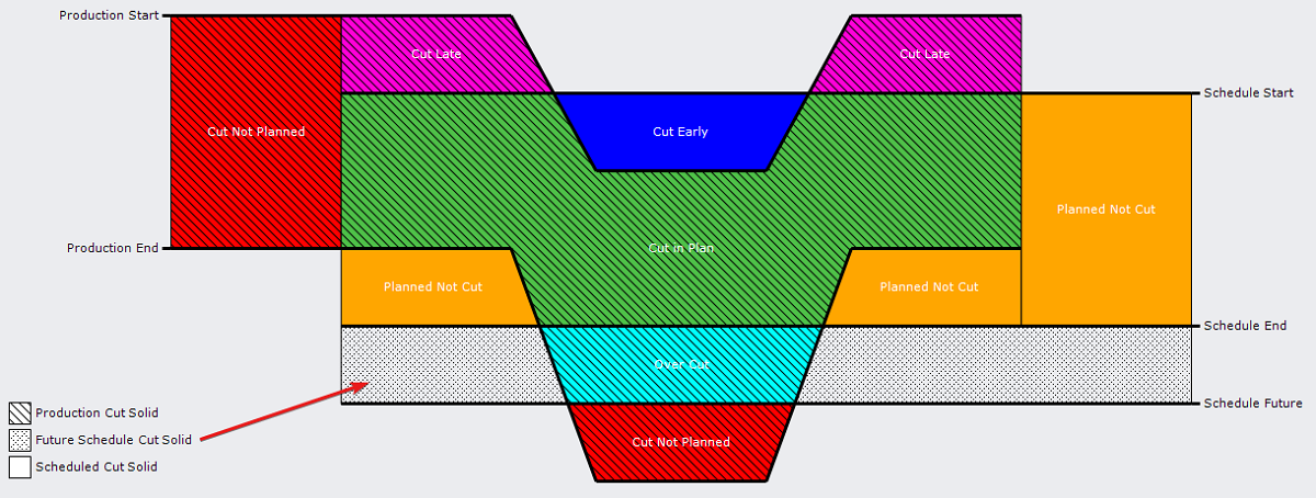 The Schedule Future surface may be used to differentiate between "Over Dig" and "Out of Plan" material. See Domain Mapping for more information. |