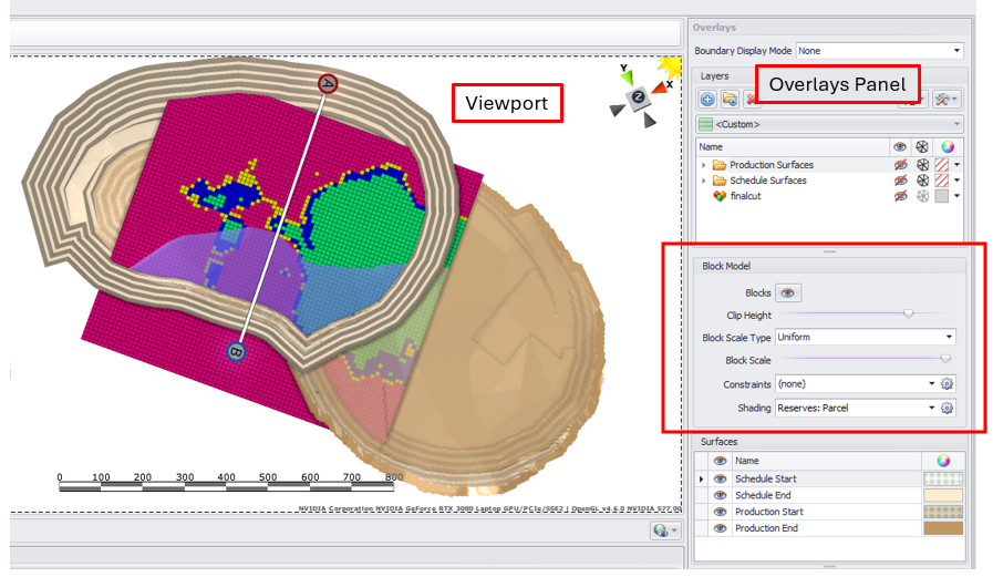A new Block Model panel can now be used to toggle on a blocks model display in the Viewport. The model height and block scale type can all be adjusted.