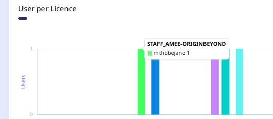 If you hover on a bar in the graph, the licence and the name of the user will be displayed in a pop up: