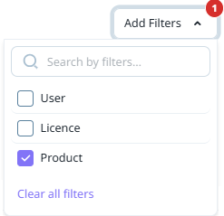 The Add Filters drop down contains options to enable the filters for the information.