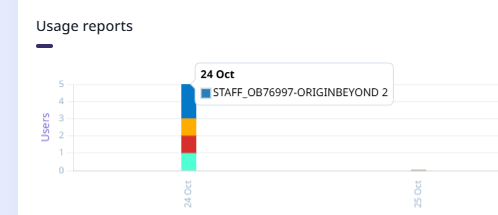 If you hover on a bar in the graph, the date of the usage and the licence will be displayed in a pop up: