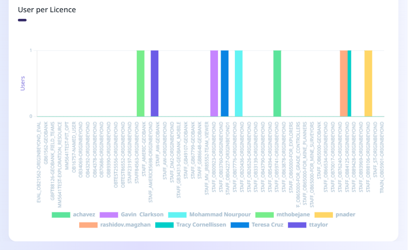 The User per Licence graph displays information on each licence by the named User assigned to them.