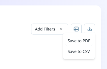 The report can be saved to PDF or a CSV file using the Download menu at the top right:
