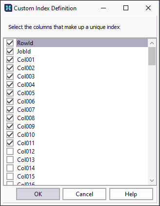 Alternatively, click on the Custom Index Definition button to select the columns that make up a unique index.