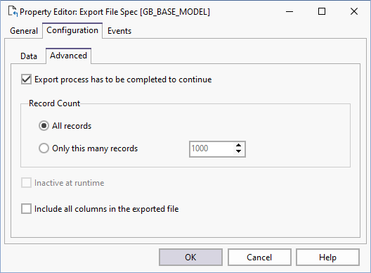 On the Advanced tab of the property editor, specify whether the completion of the export of the tasks in the file specification are mandatory.