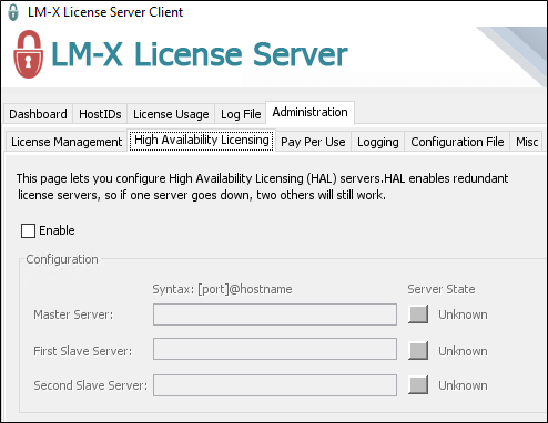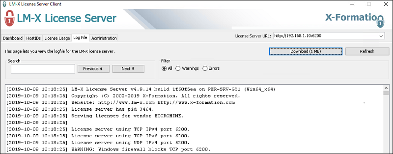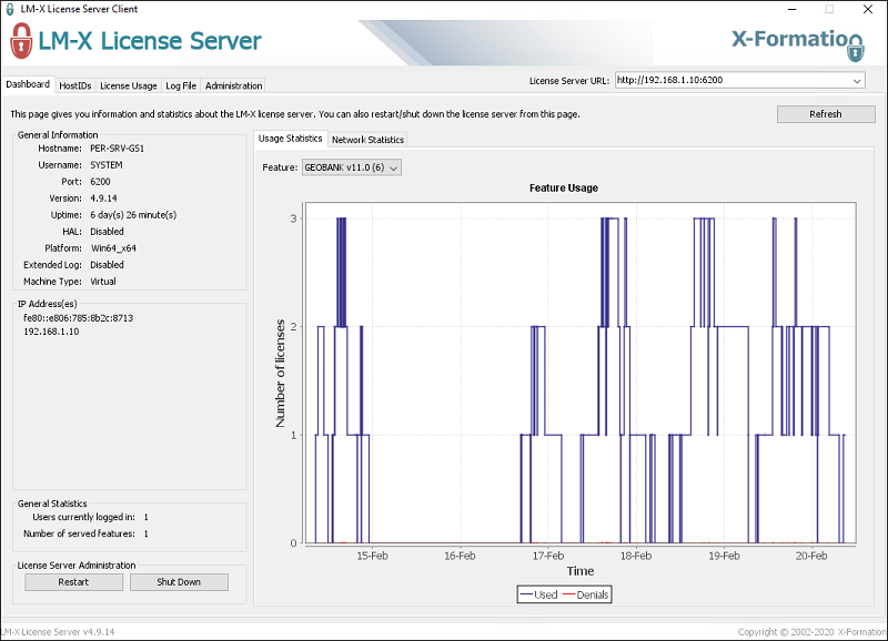 A variety of other functionality is available in the LM-X Licence Server application; For more information, see: LM-X Licence Server Management