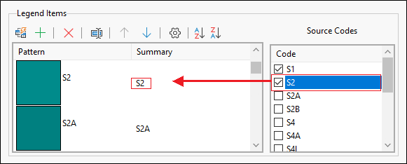 Use the grid list controls to build the legend by adding and rearranging items: