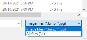 The FilePicker control allows the user to pick a file using a file explorer window. A filter can be applied to limit the file selection to files of one or more types.