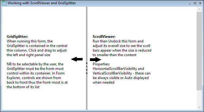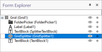 A TextBlock (SplitterTextBlock) has also been added to the form as a visual aid: