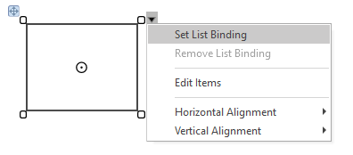 - To bind the ListBox to a field in a dataset, select Set List Binding from the control drop-down menu: