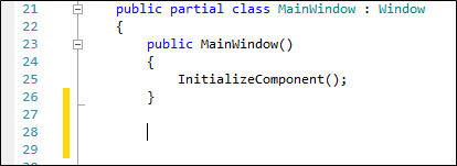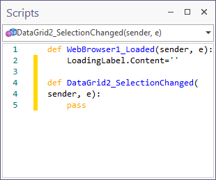 When changes are made to a script, unsaved changes are highlighted by a yellow span to the left of the pane:
