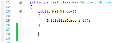 When changes are saved, the saved changes are highlighted by a green span to the left of the pane: