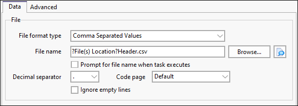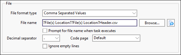 Click the Substitutions button alongside the file Browse button to select and insert a substitution parameter when specifying a file name.