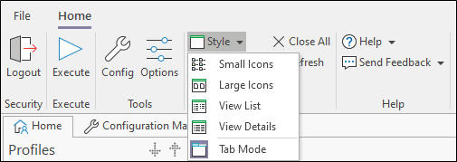 To open a task, either select it in the task list window and click the Execute button or double-click on the task. When you open a task, you can open it as a separate window or open the task in Tab Mode. See: Opening Windows as Tabbed Pages.