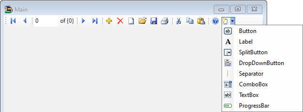 You can also add menu items using the drop-down that is activated when the BindingNavigator strip is selected.