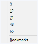 - Alternatively, click on the Bookmarks option to select from a complete list of bookmarks: