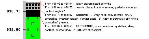 Depth Join lines indicate the position of the text relative to the ideal scaled position.