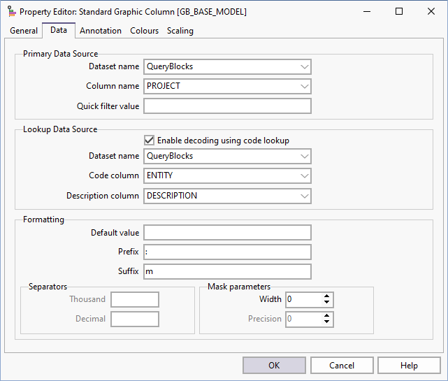 The Graphic Reporter supports "on-the-fly" decoding, eliminating the need for decoded extract tables. During the decoding process, the coded value of the source field is translated to its associated description by performing a code lookup against a nominated code table. All the parameters needed for this process must be defined at design time, including: