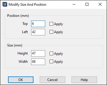 Select the Apply check boxes to apply one or more of the position and size values you have entered.