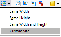 Use the options on the Adjust Sizes tool menu to resize the objects you have selected. Care should be taken. All selected objects will be resized in the specified dimensions.