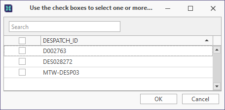 To select or clear all samples use the check box in the grid header. You can then select/deselect despatches individually.