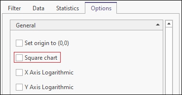 Select this option to generate a squared chart with the same x and y scale. Setting a square chart for some elements may be obvious and sensible, but might not be so obvious or sensible for elements that have different scales.