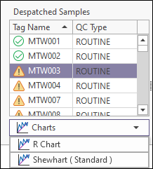 The following Chart options are available on the Sample Reconciliation tab under the Despatched Samples panel when a receipt is being executed.