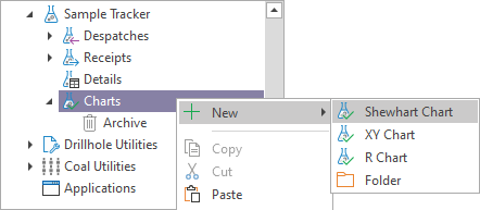 One of the key features in Sample Tracker is the ability to check the reliability of the analytical results before the receipt is written to the database. Three types of quality control charts are available from the QC Charts page: