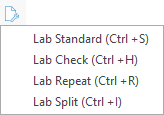Add as. Select an option from the tool menu to identify the selected sample(s) as either a Lab Standard, Check, Repeat or Split: A Lab Standard is selected from a list of standards. These must be obtained from the laboratory. | |