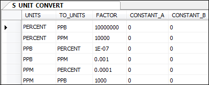 The logic for every possible conversion must be entered in the unit conversion table. Conversions from ppm to ppb and from ppb to ppm must be defined individually.