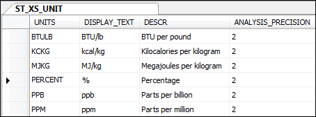 The value of STORE_RESULT is stored "as is" (i.e. using the units of measurement as reported by the laboratory). However, the value of CALC_RESULT is always stored in the same units, i.e. the nominated units for the element. (Nominated units for the various elements are stored in the NOMINATED_UNITS column of the ST_XS_ELEMENT table.) If necessary, the value of CALC_RESULT will be converted to the nominated units, using conversion rules defined in table ST_XS_UNIT_CONVERT.