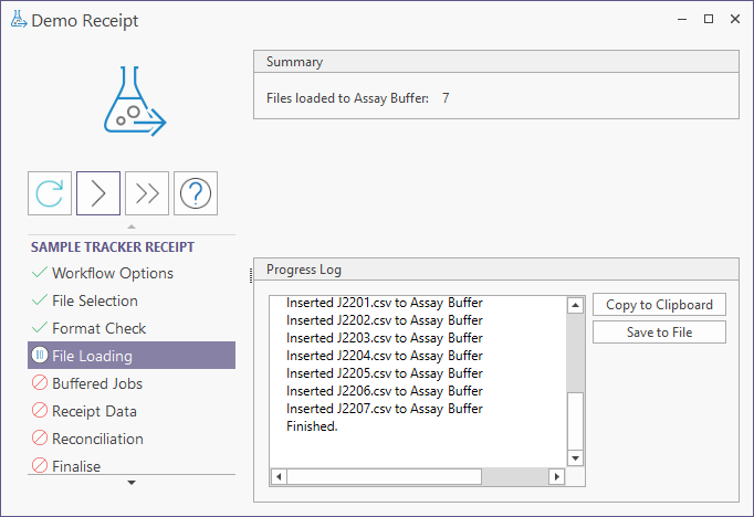 The File Loading process begins loading the selected file/s to the Assay Buffer tables.