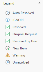 A Legend can be opened with the button at the right, describing each status for analysis elements. The Legend can be closed using the arrow at the top right.