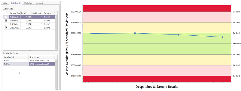 If you select Shewhart Chart from the menu, the Shewhart chart for the selected samples will be displayed.