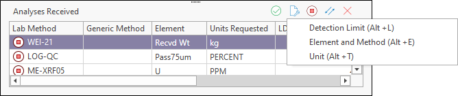 | Method | The parameter used to identify the analyses required from the lab (usually an element/method combination) |