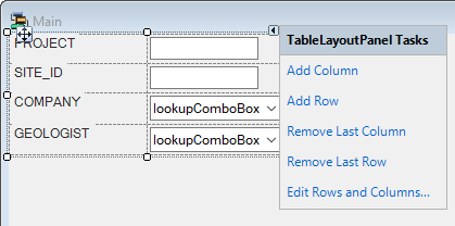 If a container is to be created, you can select a FlowLayoutPanel or TableLayoutPanel from the drop-down list.