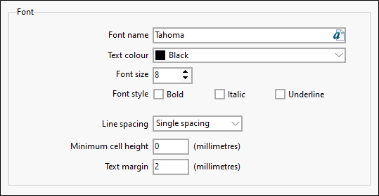 You can also set the Line spacing of the text, the Minimum cell height, and the Text margin.