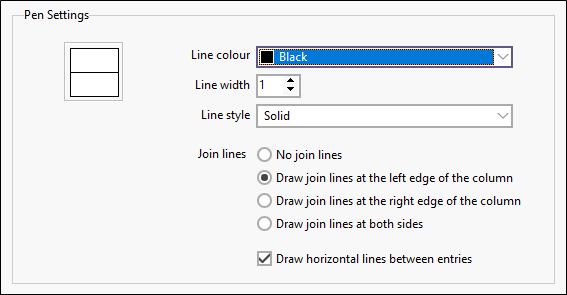 You can choose to add Join lines at the left, right, or both, edges of the column, and draw a horizontal line between the entries.