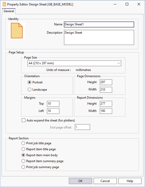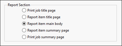 Select the Report Section that the design sheet applies to. You can add a new design sheet for each section of a report. Margins may differ, for instance, between the Title page of a report and the report's main body.