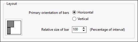 Specify the relative size and the primary orientation of the bars in the bar graph.